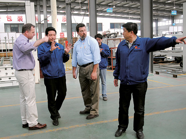 全球大型纸制品企业集团GP公司专家在山东睿丰包装有限公司进行实地考察,主要考察公司的吞吐能力和机械使用情况。